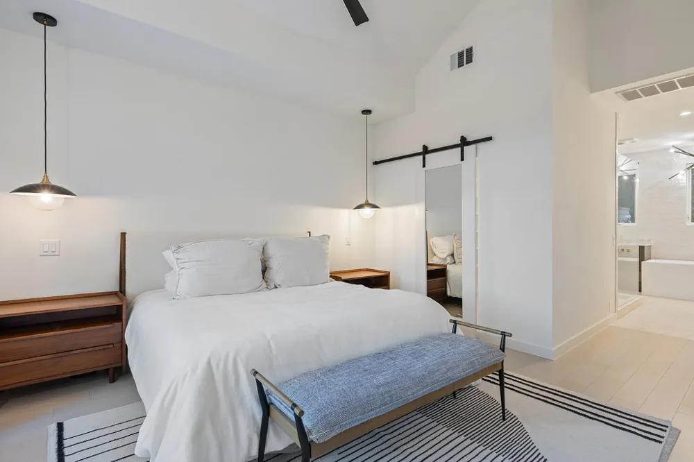 This stunning lock-and-leave modern farmhouse—designed by acclaimed architect Jeffrey Berkus as his personal retreat—rests in a secluded setting at the end of scenic Commons Ford Road, just steps from the property’s deeded boat dock with lift, storage locker, and tanning deck on the coveted waters of Lake Austin. The dock and slip alone—valued at over $1 million—underscore the extraordinary opportunity this property presents. Both the main residence and guesthouse showcase curated natural materials, including stone columns, wood-framed windows, designer inlaid concrete floors, and a freshly repainted interior that enhances the home’s warm, modern aesthetic. The main house offers three bedrooms, three baths, and three distinct living areas. A sunken living room anchors the home with architectural flair, while the chef’s kitchen and dining area invite effortless entertaining. Each bedroom features a charming loft—ideal for a fitness nook, studio, or additional sleeping space. The serene primary suite includes a sitting area with treetop views and a newly remodeled spa-like bath with soaking tub, seamless glass shower, and custom closets. A lofted office opens to a skywalk leading to a multilevel deck shaded by heritage oaks, with a fire pit terrace overlooking the private wooded backyard—perfect for intimate gatherings or quiet evenings. The guesthouse offers a kitchenette, full bath, living area, and a hidden second-story bedroom with a private balcony. Located in Panorama Ranch within acclaimed Eanes ISD, this property blends privacy, architectural distinction, and priceless waterfront access, open meadow views, and the rare luxury of direct Lake Austin living—offering an exceptional opportunity to own a true waterfront retreat.