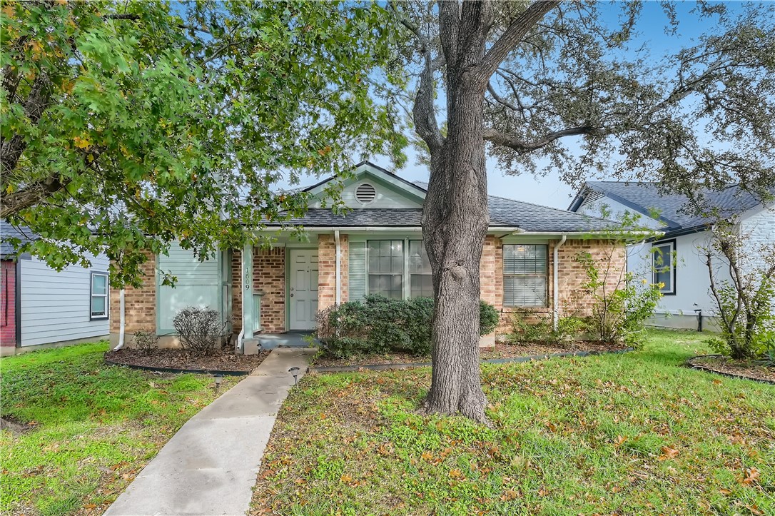 Spacious 3-bedroom home in a wonderful community with a greenbelt park that has great views and jogging trails. Featuring mature landscaping with large shade trees in the front, a covered porch, and alley access to the driveway and attached garage. The home has a front living room with a cozy brick fireplace and a vaulted ceiling, a great space for entertaining. The flexible room next to the kitchen can be a family room or spacious formal dining that can accommodate a large table. Gas appliances in the kitchen with a pantry and breakfast bar. Luxurious primary with a vaulted ceiling, walk-in closet, and private full bath. Secondary rooms have ceiling fans. The backyard has a patio and privacy fencing. A great space to relax and enjoy our incredible Texas sunsets. The home is clean and move-in ready. Click the Virtual Tour link to view the 3D walkthrough.