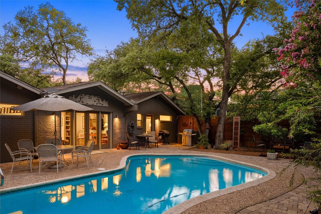 This turn-key mid-century ranch home is located in one of the most desirable areas of Barton Hills. Less than a block away from Barton Hills Elementary school & Barton Creek greenbelt entrance. Easy access to the Barton Hills Rd bike lanes for a quick walk or bike ride down to Zilker Park, Barton Springs pool and the Lady Bird Lake hike & bike trail. Meticulously maintained and tastefully updated throughout, this home features two Primary Suites with direct pool access (one with a HUGE walk in closet!), updated open concept kitchen with ample storage, nicely renovated bathrooms featuring walk in showers and Toto toilets, HVAC replaced in 2022 and heated pool with outdoor shower area. Situated on .21 acres of mostly level lot with gorgeous native plant xeriscaping throughout gives a cozy, private feel to the space. Don't miss this opportunity to own a lovingly cared for Barton Hills classic.