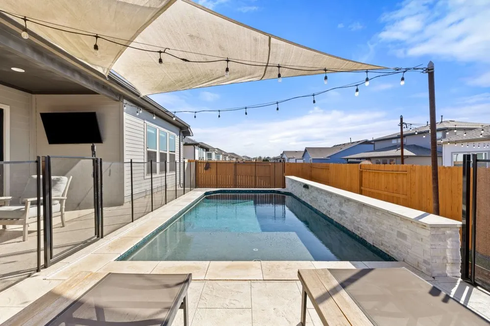 Tucked into the Skyline Park section of the rapidly growing Easton Park community, this beautifully upgraded Perry Homes build offers 4 bedrooms + a dedicated office, 3 full bathrooms, and a layout designed for both comfort and style. Soaring 12-foot ceilings throughout create an airy, open feel, while tasteful cosmetic improvements give the home a fresh, modern look from room to room. The flexible floor plan provides a private office ideal for working from home, along with spacious bedrooms and well-appointed bathrooms. The kitchen and living areas flow seamlessly to the backyard, making indoor-outdoor living effortless. Step outside to your own backyard retreat featuring a pool, an extended patio perfect for entertaining, and low-maintenance turf that keeps the space green and inviting year-round. Whether hosting friends or enjoying a quiet evening at home, this outdoor setup truly stands out. Additional highlights include epoxied garage floors and numerous thoughtful upgrades that elevate the home beyond builder grade. Enjoy the convenience of being walkable to multiple parks and trails, including Skyline Park, as well as Newton Collins Elementary School. The area continues to expand with exciting retail and amenities nearby, including the recently announced H-E-B planned for completion in 2027. This is a move-in-ready opportunity in one of Southeast Austin’s most vibrant and growing communities.